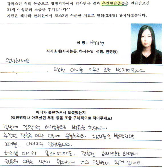 -추간판 탈출증-백미선님